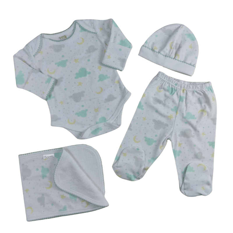 • Contiene: Body manga larga, Patita, Tutito con reverso de toalla y gorrito suave que mantiene la temperatura del bebé sin acalorar su cabecita.